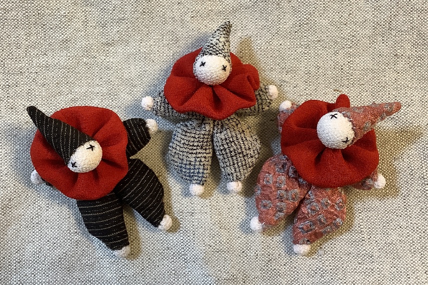 手芸品整理をしていたらピエロのブローチが出てきました。随分前にどなたかに作品を見せてもらい見よう見まねで作ったものです。その作品に目はついていませんでしたが私は目を刺繍してみました。