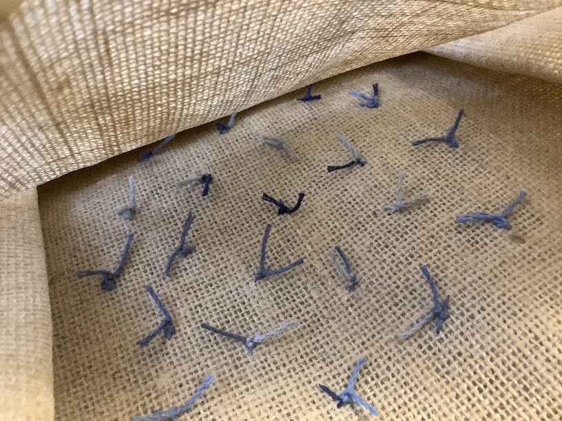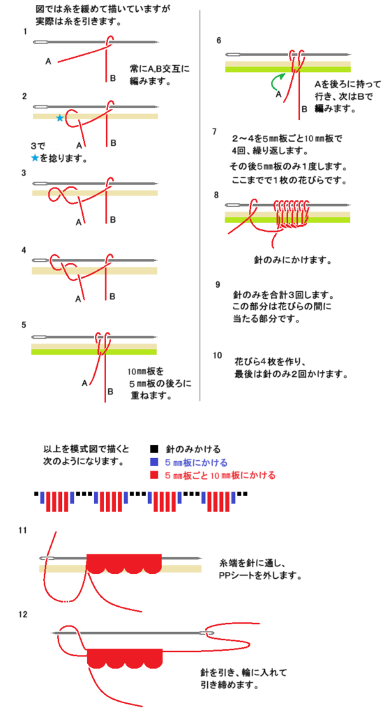 針は長い方がよいので布団針を使っています。布団針、PPシートもダイソーで購入できます。