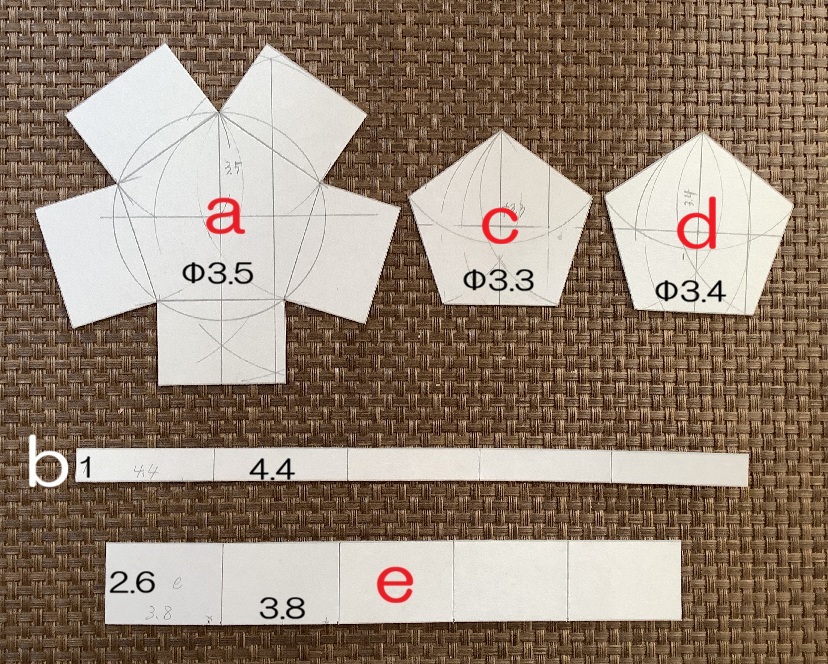 ・五角形dにのり代5㎜を加え裁ちます。