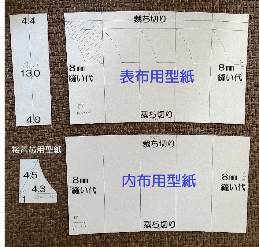 ・型紙②上下は裁ち切り、左右は縫い代8㎜取って裁ちます。