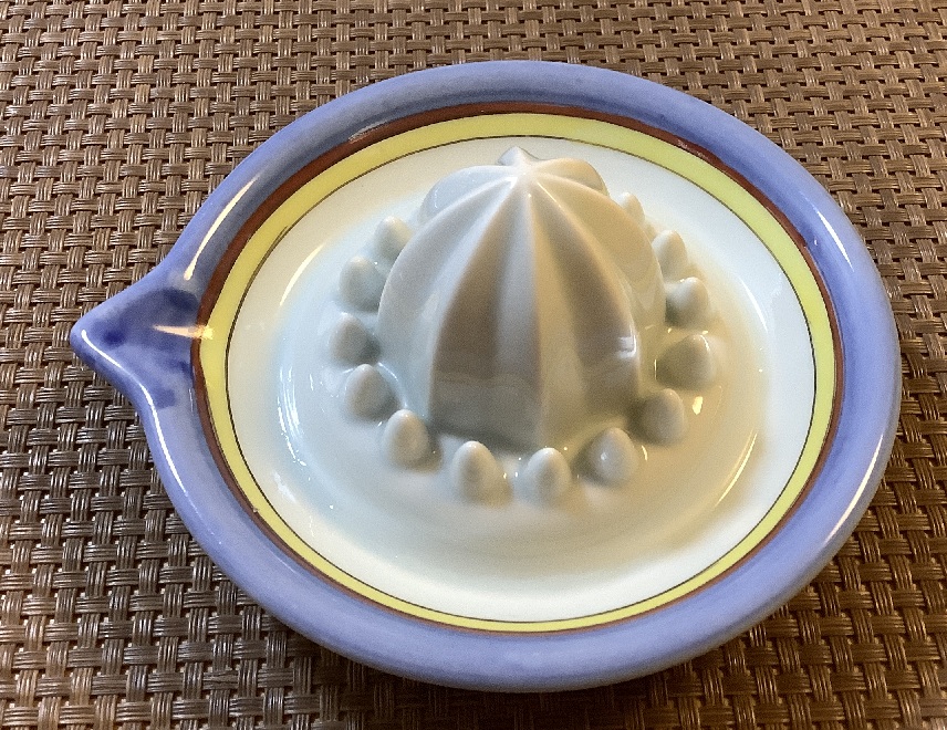 昨年まで手で搾ってもったいなかったので今年は陶器製のレモン搾り器を購入しました。ステンレス製もありますが酸性のレモン汁には陶器製の方がいいかな~と思いました。周囲のボツボツした突起はいい具合に種の流れ込みを防いでくれます。
