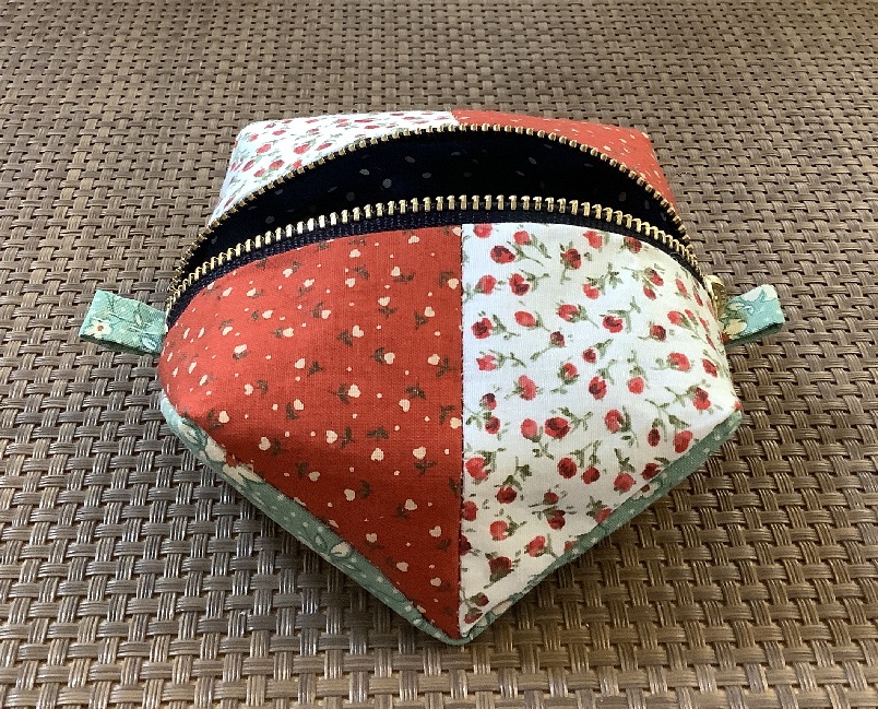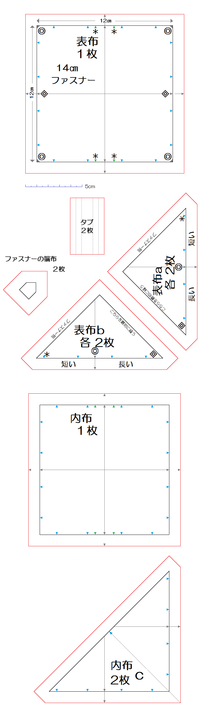 この時は12㎝ファスナーを使っていましたが今回14㎝ファスナーに変えて大きく開くようにしました。また、ファスナーの両端にタブをつけました。